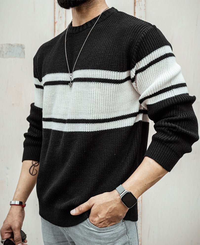 Winter arrives in style this year. Bringing you the knitted sweatshirts for men, a must-have wardrobe piece. The sweatshirt is versatile and easy to style. Pair it with denim jeans or tailored pants for a smart-casual twist. It features a round neck, elasticated wrists, and a neat fit. Designed with blended knitted fabric, the sweatshirt will keep you warm and comfortable with every wear.