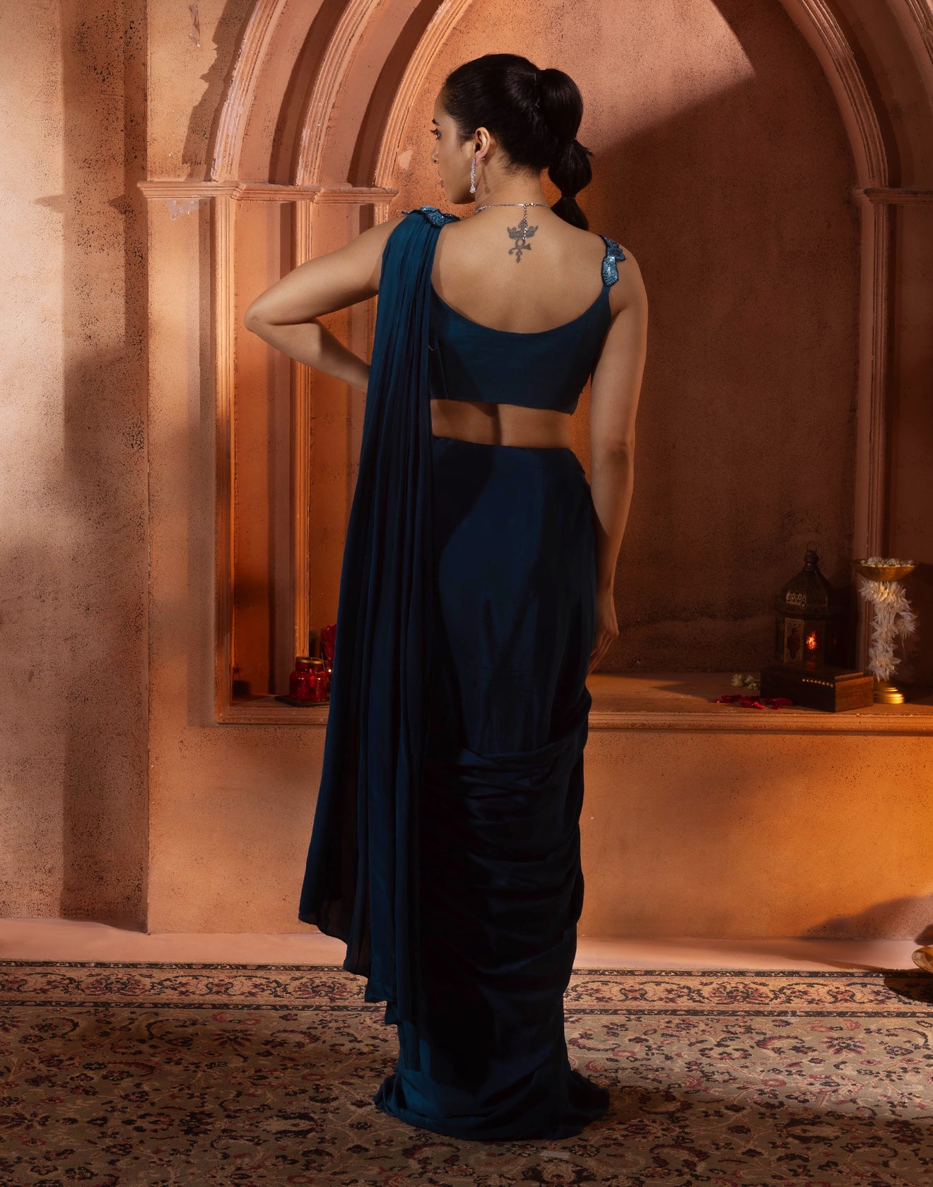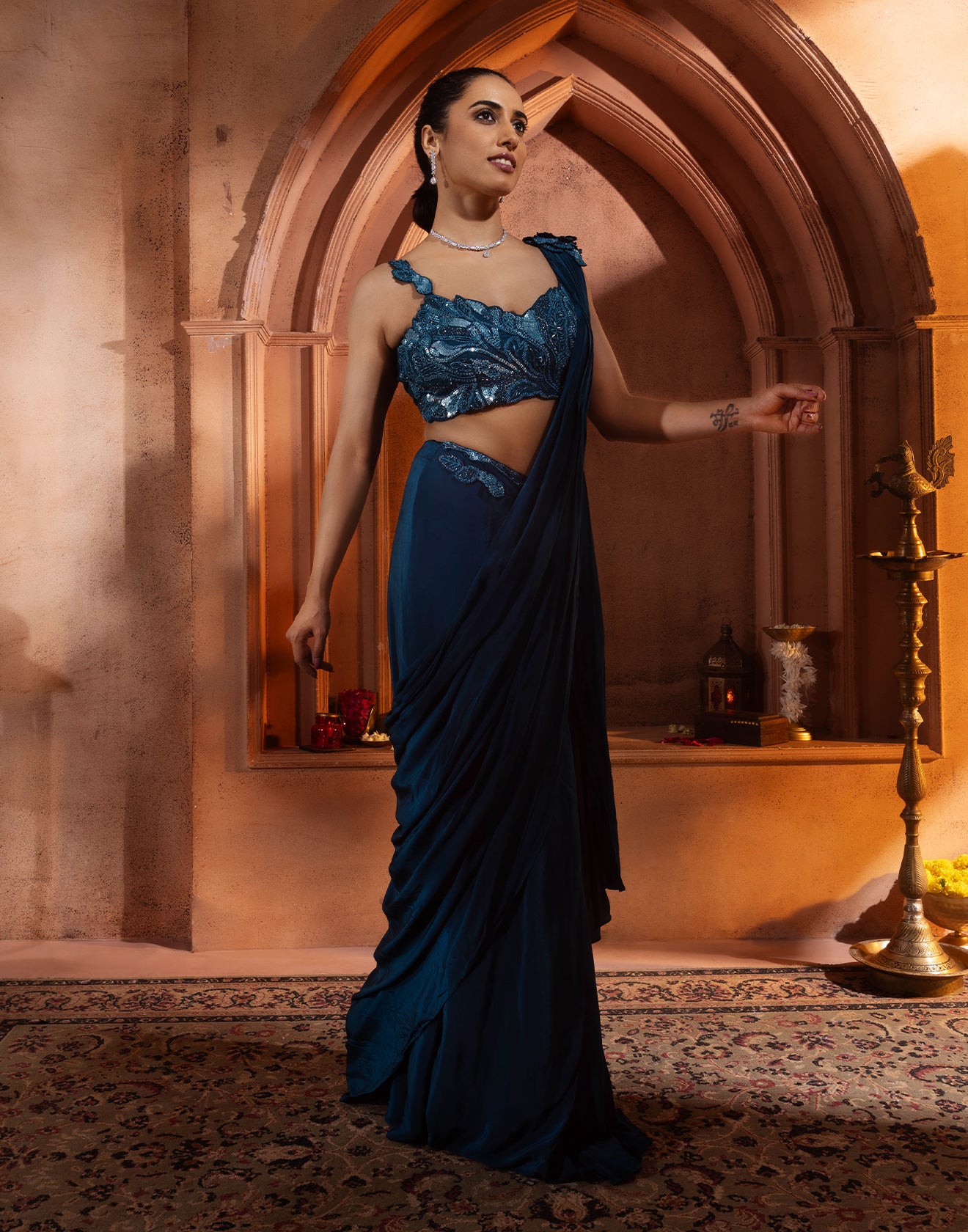 Be the first to review “Dark Turquoise Cocktail Pre-Stitched Saree”