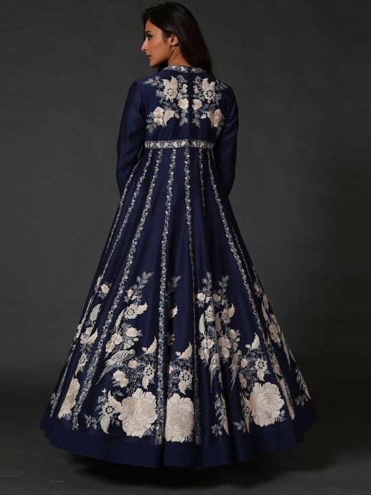 Navy blue & cream coloured printed Kurta with churidar & dupatta