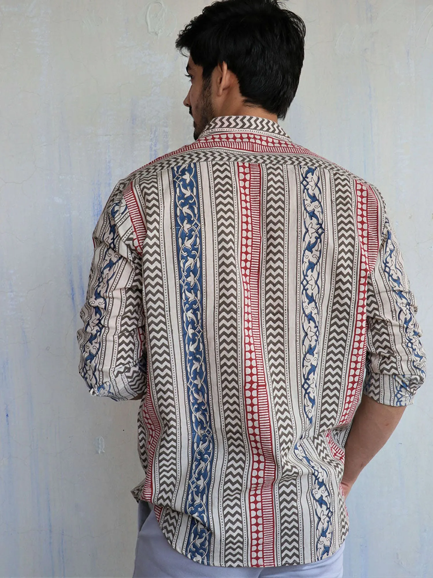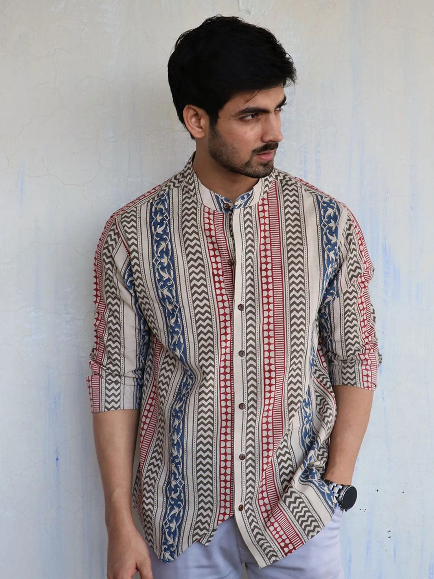 What truly sets this shirt apart is the block print pattern, an artistic touch that adds character and depth to the fabric. Block printing is a traditional, handcrafted technique that imparts a unique and textured appearance to the fabric. The pattern, whether it’s intricate motifs, geometric shapes, or abstract designs, elevates this shirt into a work of art.