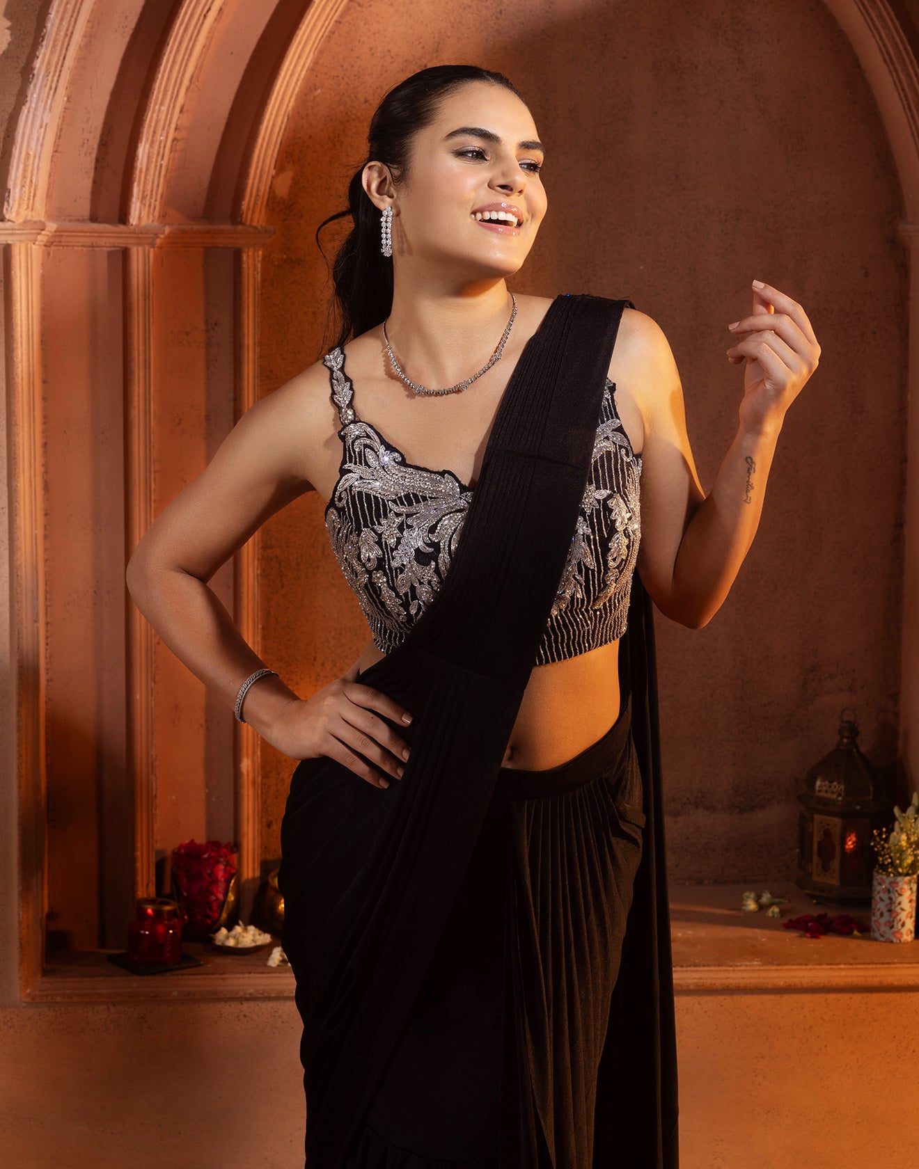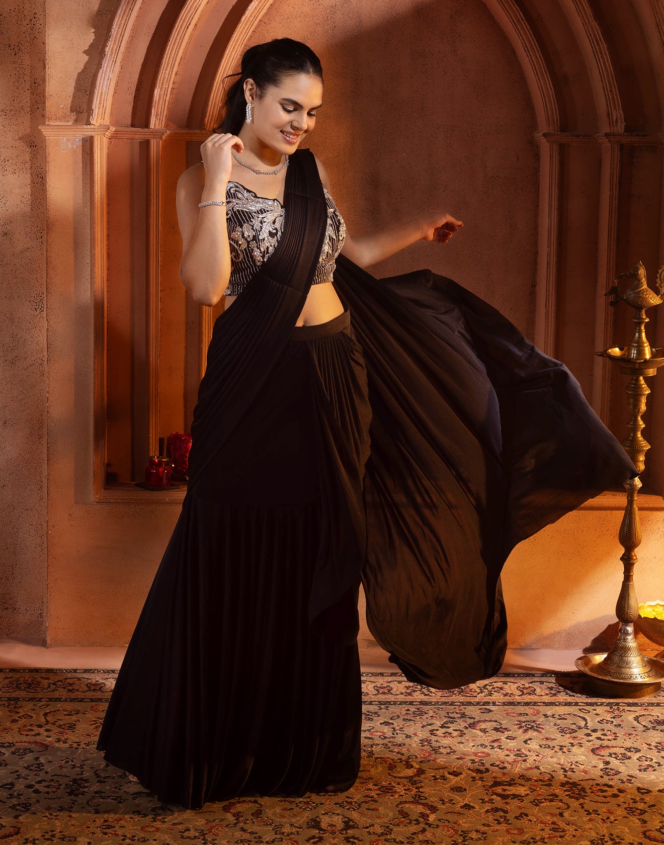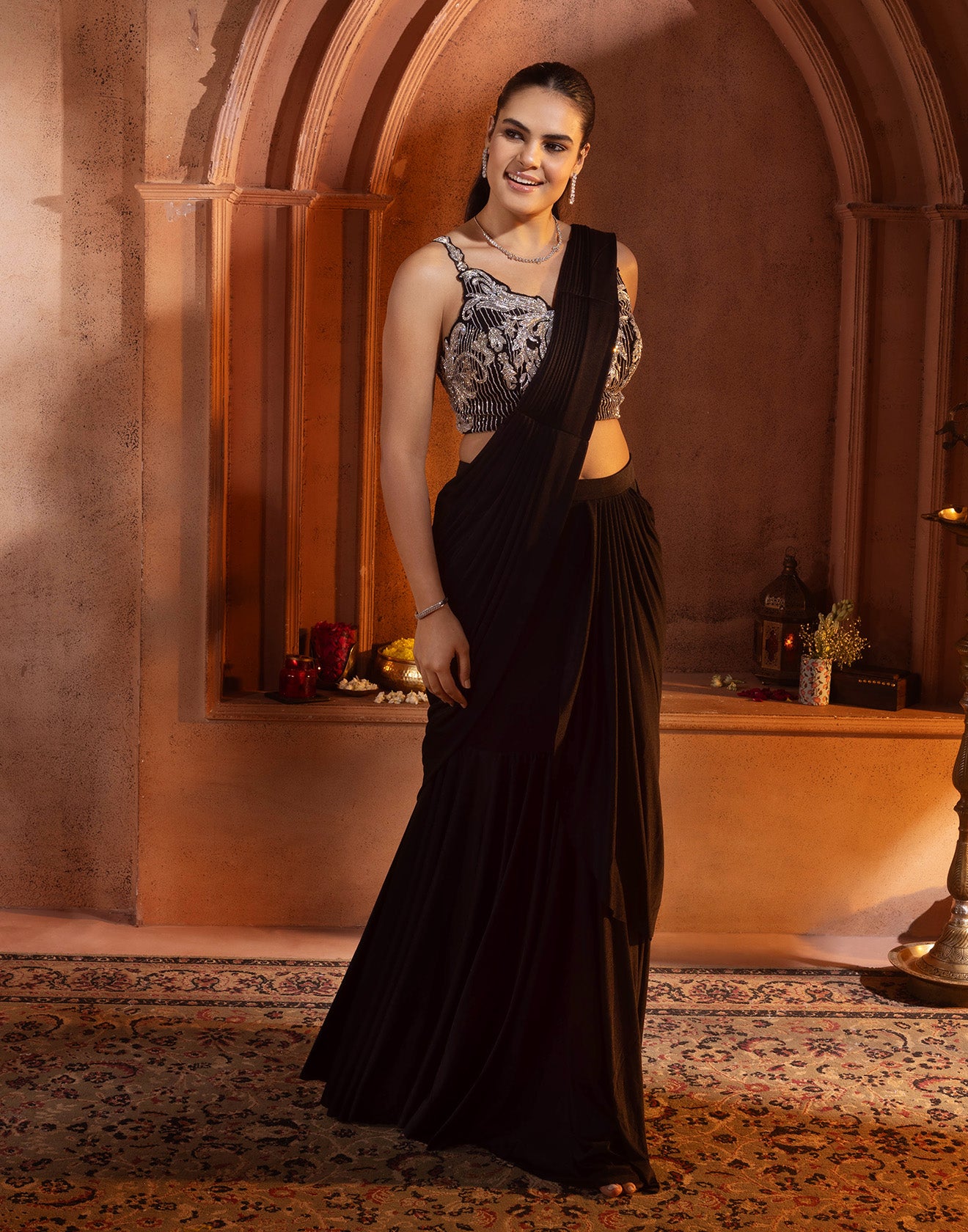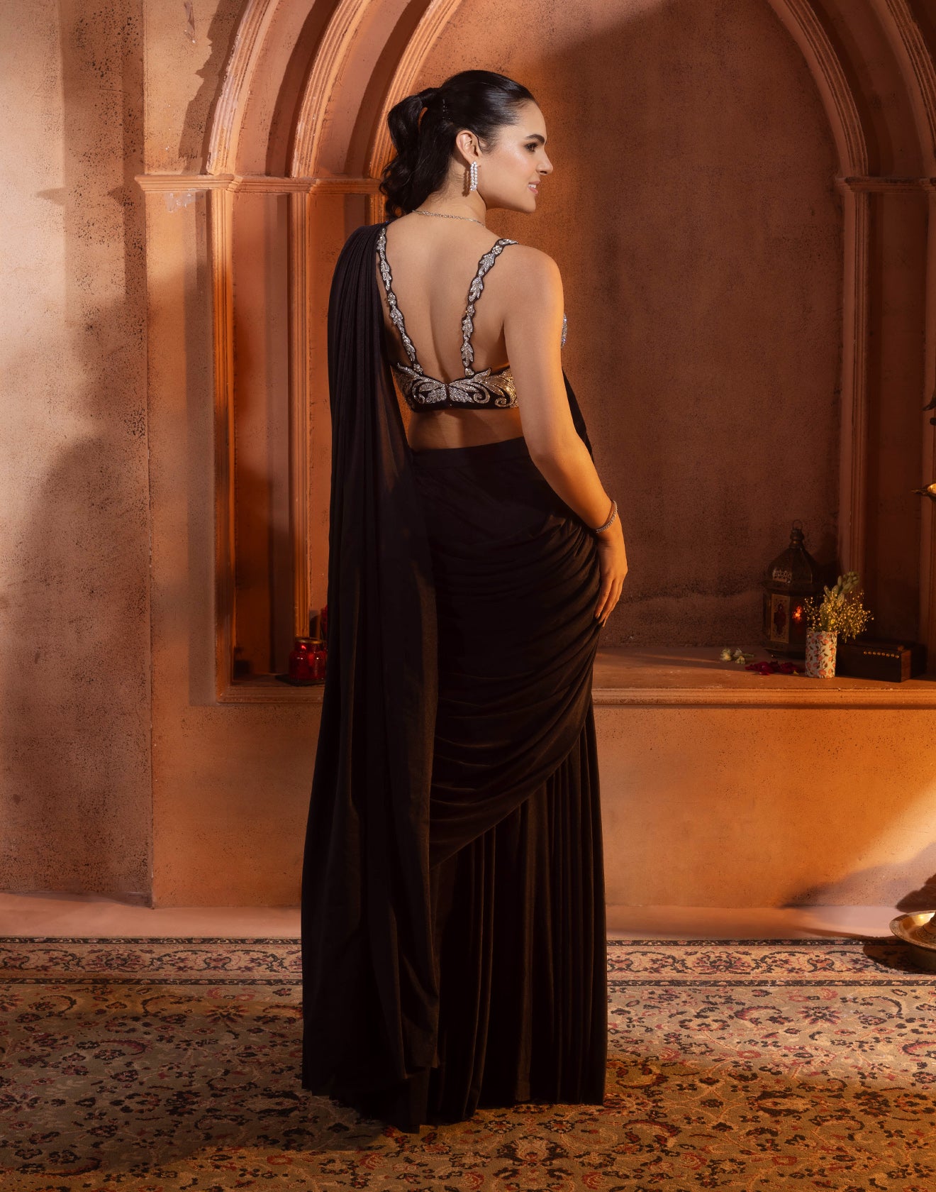 - This jet black saree is a perfect fit for indi-cocktail celebrations.