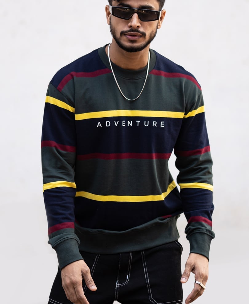 One style, countless outfit inspirations, it’s the era of vibrant oversized t-shirts for men. You can’t go wrong with these full sleeves t-shirts. The fit has a ribbed neck, stripe panels, chest typography, and drop shoulders. It is made of a blend of looper fabric for all-day comfort and style. Wear it with dark denim jeans to create some of the season’s best looks.