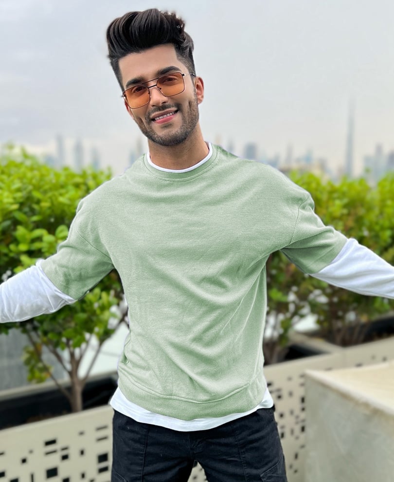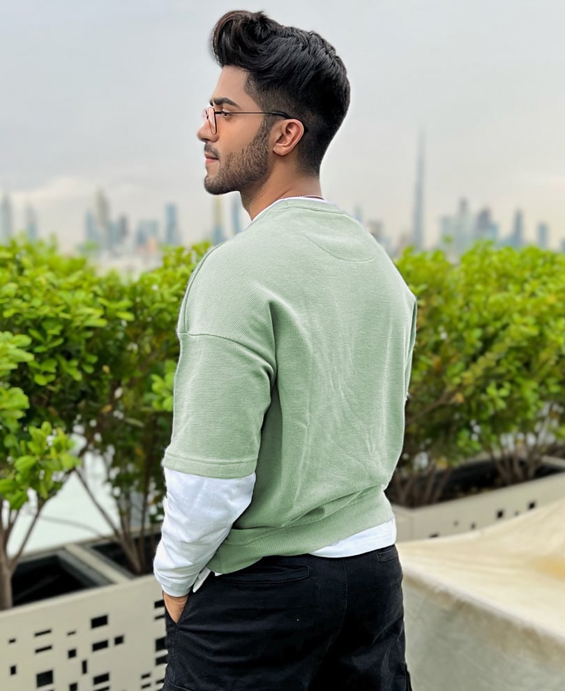 A Pista Green and White oversized t-shirt have a classic style that you can wear on any casual day. This oversized t-shirt features a blend of knitted fabric that is durable and very comfy to wear in all seasons. This t-shirt has a dual color crew neck with drop shoulder full sleeves in a loose fit. Pista green crew neck t-shirt can be paired with denim jeans and essential accessories for a complete urban look.