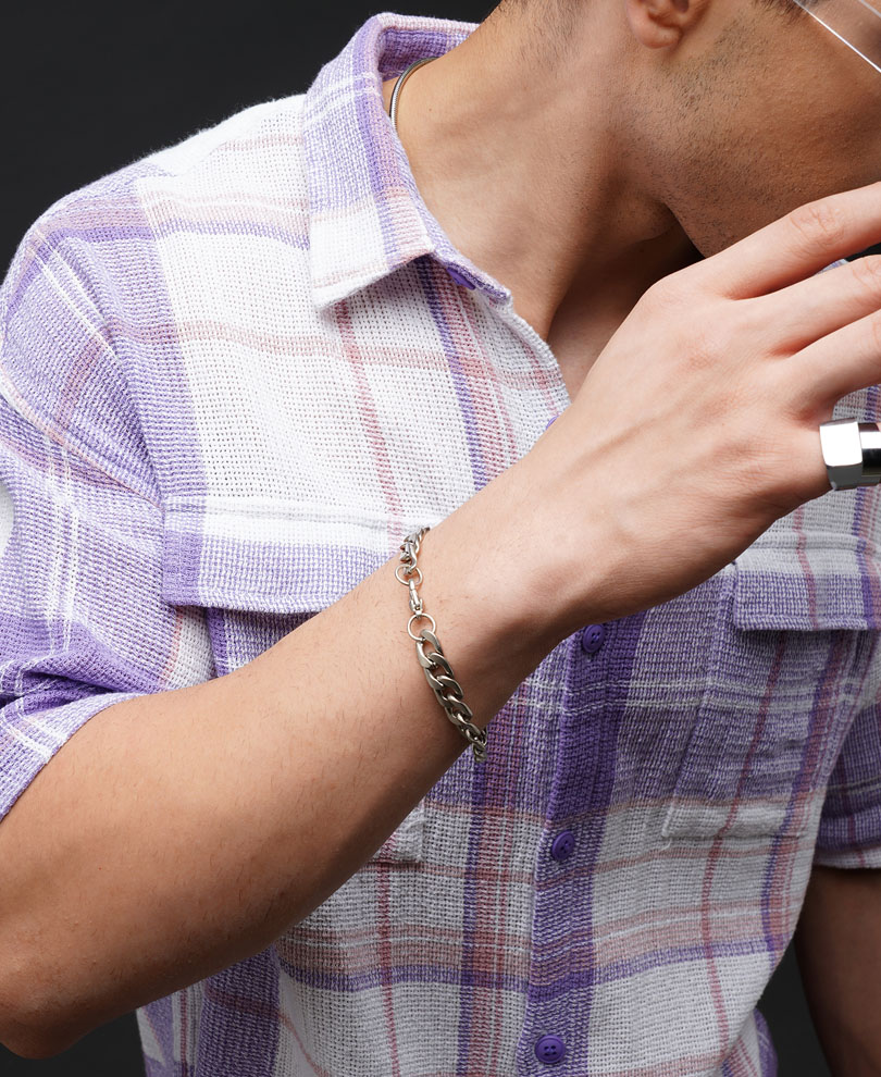 A must-have for any season is checked oversized shirts for men. Designed in muted purple, the checked shirt is perfect for lounging, running errands, and vacation plans. It is made of Blend Structured fabric for superior comfort. The checked oversized shirt has a spread collar, double chest pockets, drop shoulders, and a roomy fit. It can be paired with jeans, cargo, or shorts.