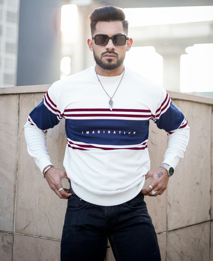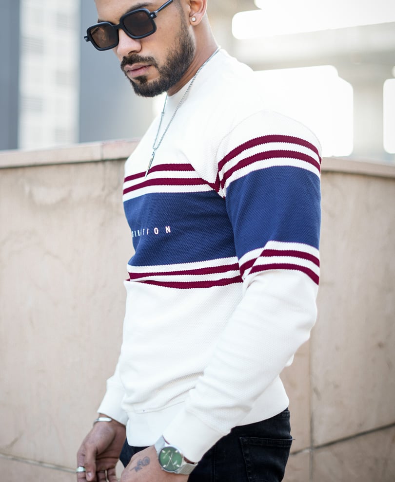 Casual elegance is a thing because of our full sleeves t-shirts for men. Made of a blend of cotton knitted fabric, this full sleeves t-shirt offers a posh and comfortable look. It features a ribbed neck, drops shoulders, panel print, and an oversized fit. Wear it with slim-fit or skinny jeans to add a touch of finesse to your streetwear repertoire.